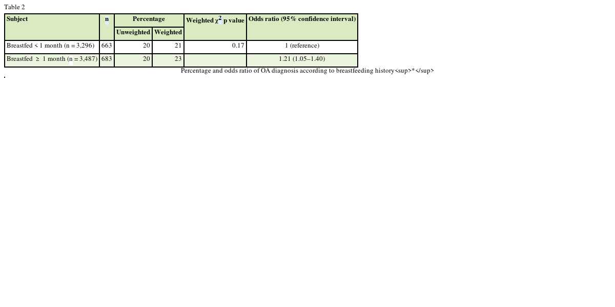 Table 2 Percentage and odds ratio of OA diagnosis according to breastfeeding history*