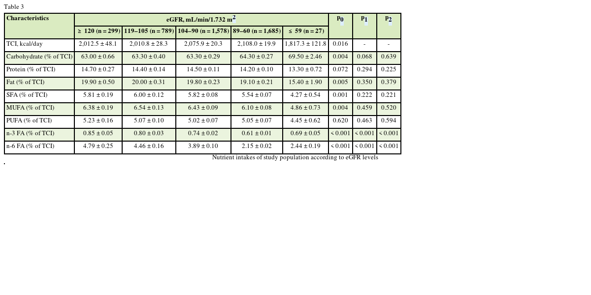 Table 3 Nutrient intakes of study population according to eGFR levels
