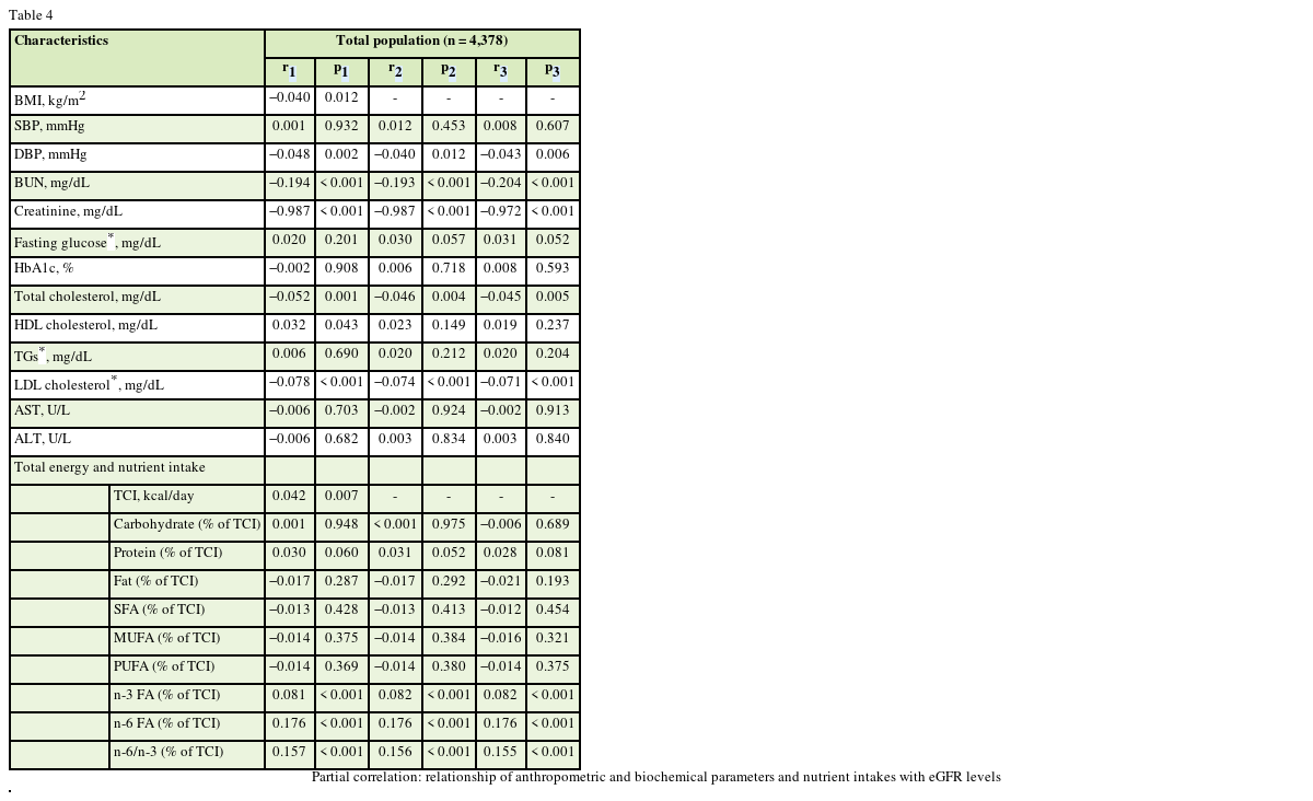 Table 4 Partial correlation: relationship of anthropometric and biochemical parameters and nutrient intakes with eGFR levels