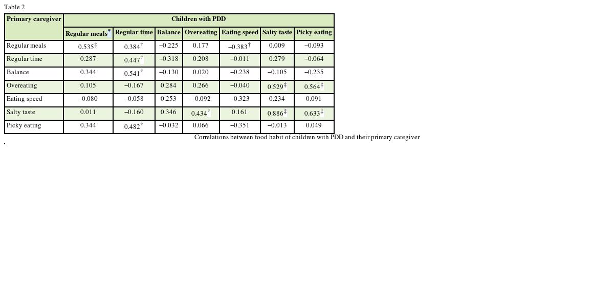 Table 2 Correlations between food habit of children with PDD and their primary caregiver