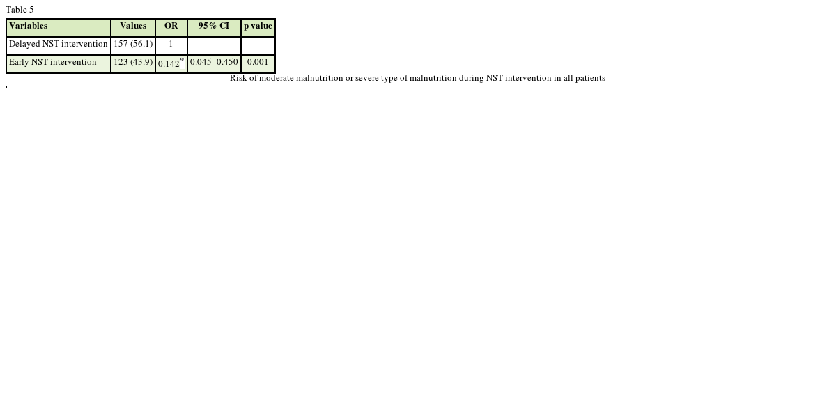 Table 5 Risk of moderate malnutrition or severe type of malnutrition during NST intervention in all patients