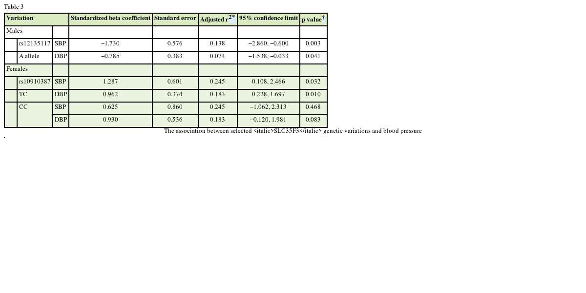 Table 3 The association between selected SLC35F3 genetic variations and blood pressure