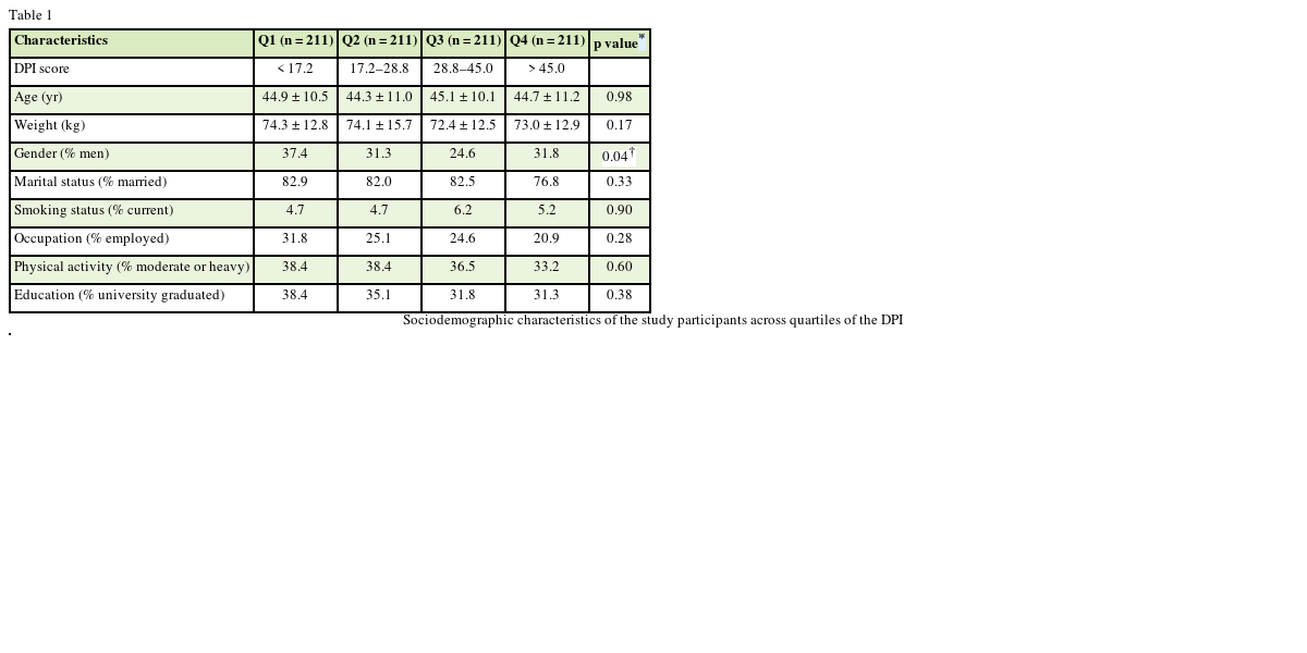 Table 1 Sociodemographic characteristics of the study participants across quartiles of the DPI
