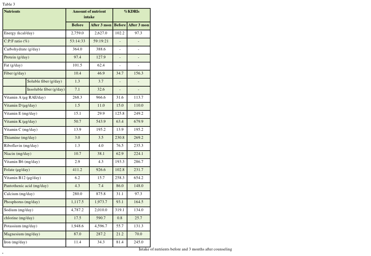 Correspondence to Shin-Sook Kang. Department of Dietetics and Nutrition Services, Asan Medical Center, 88 Olympic-ro 43-gil, Songpa-gu, Seoul 05505, Korea. sskang@amc.seoul.kr