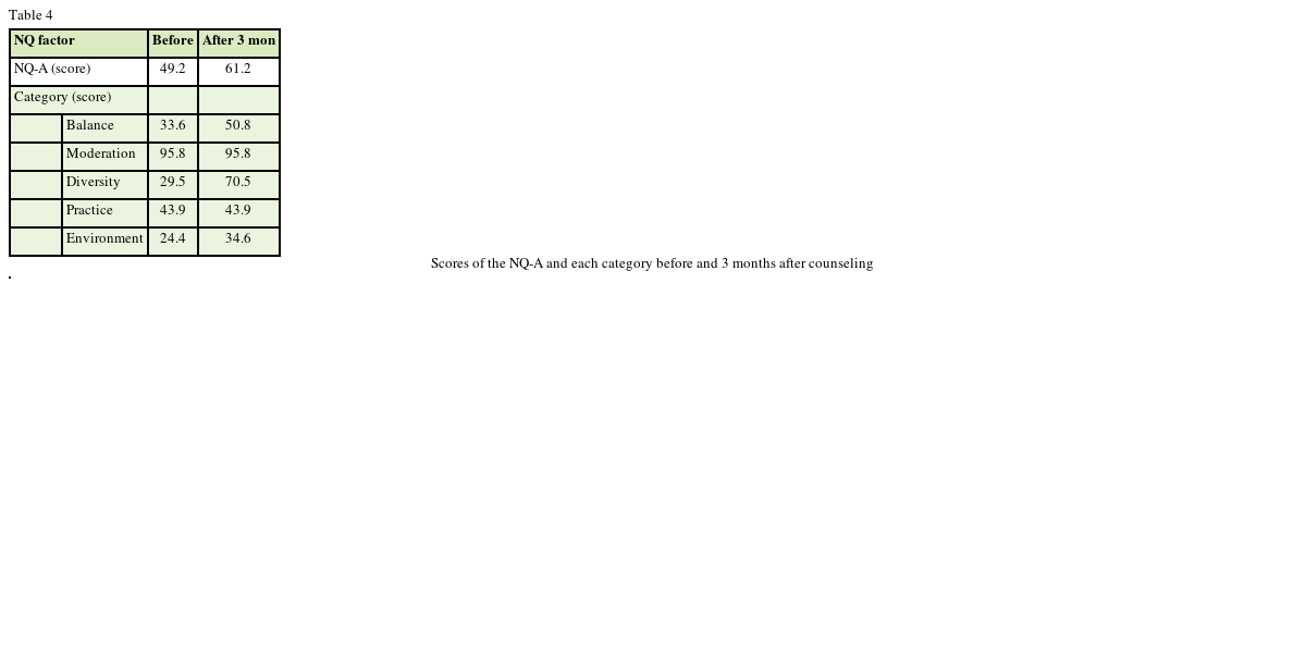 Table 4 Scores of the NQ-A and each category before and 3 months after counseling