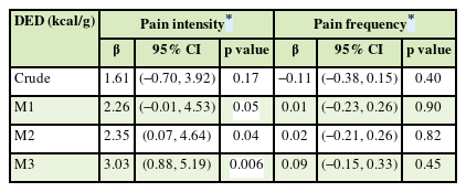 DED (kcal/g) Pain intensity* Pain frequency*