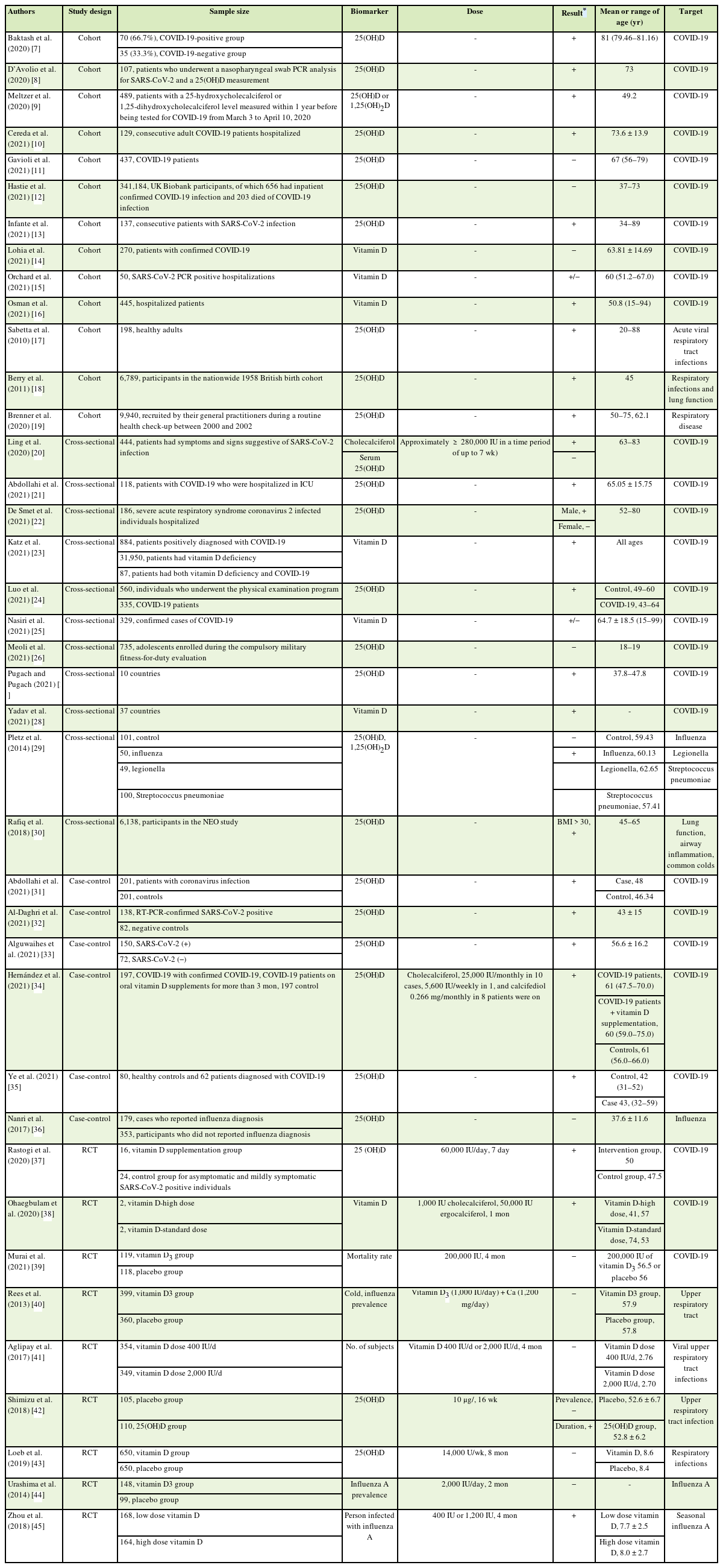 Table 1Main characteristics of the articles evaluating the association between vitamin D and respiratory-related viral infection