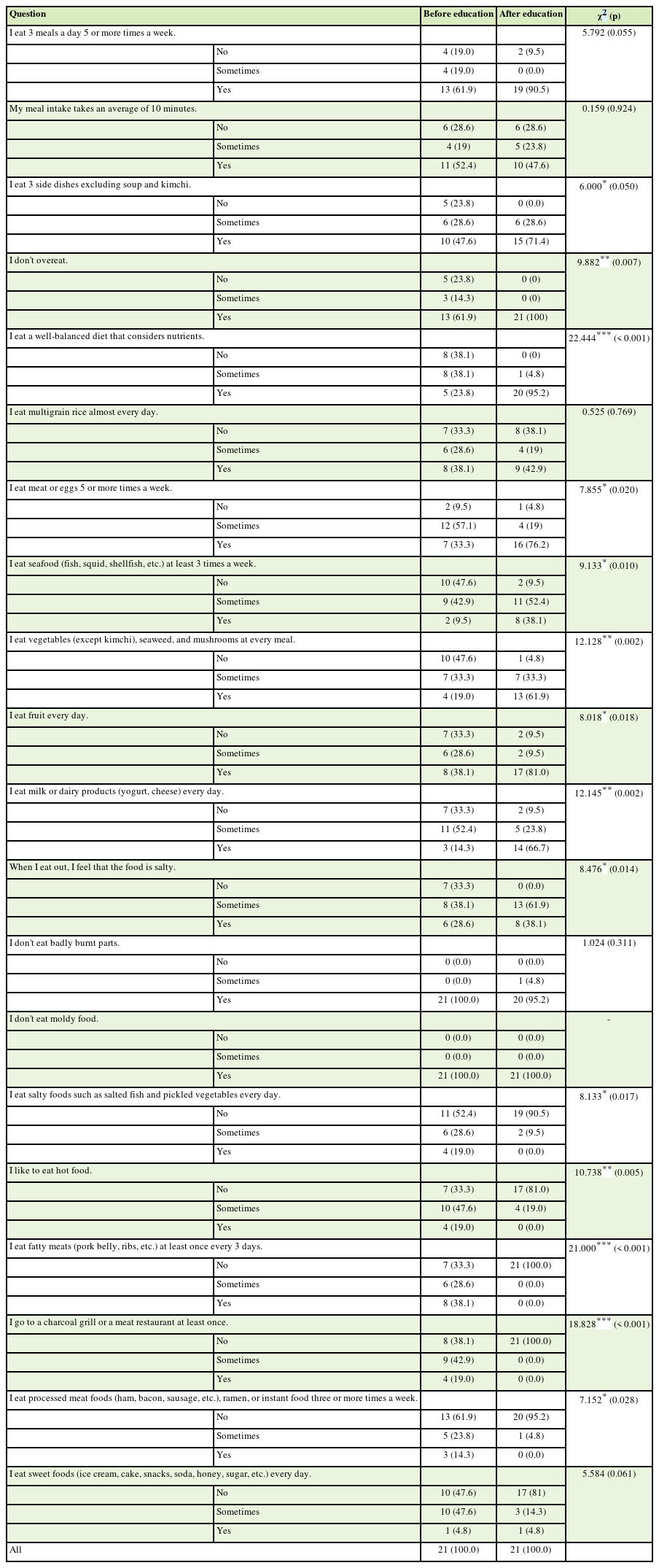The National Cancer Information Center’s ‘My Diet Evaluation Table’ was used for dietary habit survey [