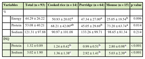 Keywords: Aged; Food; Protein; Sodium; Dietary reference intake