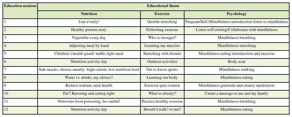 Keywords: Community childcare center; Multidisciplinary education; Nutrition education; Exercise education; Psychology education