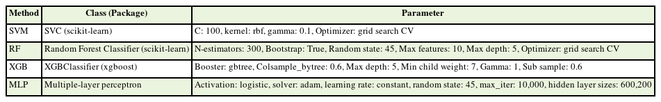 Table 1Machine learning algorithms and hyperparameter settings