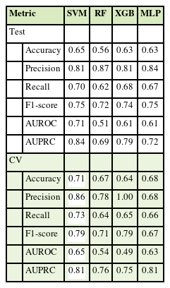 Table 1). Four ML algorithms were implemented and compared: