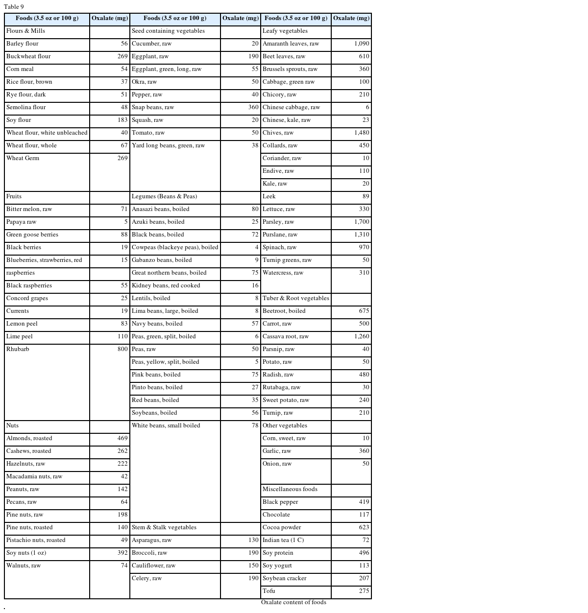 Dietary oxalate may be important in stone development; spinach, beets and rhubarb in particular, contain large amounts of oxalate and they may increase urinary oxalate excretion and predispose to the development of calcium oxalate stones. High dose vitamin C therapy can also lead to increased oxalate generation as vitamin C (ascorbic acid) is metabolized. Oxalate reabsorption in the colon is reduced by the formation of insoluble calcium oxalate [