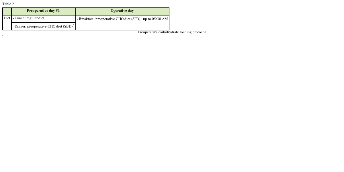 Table 2 Preoperative carbohydrate loading protocol