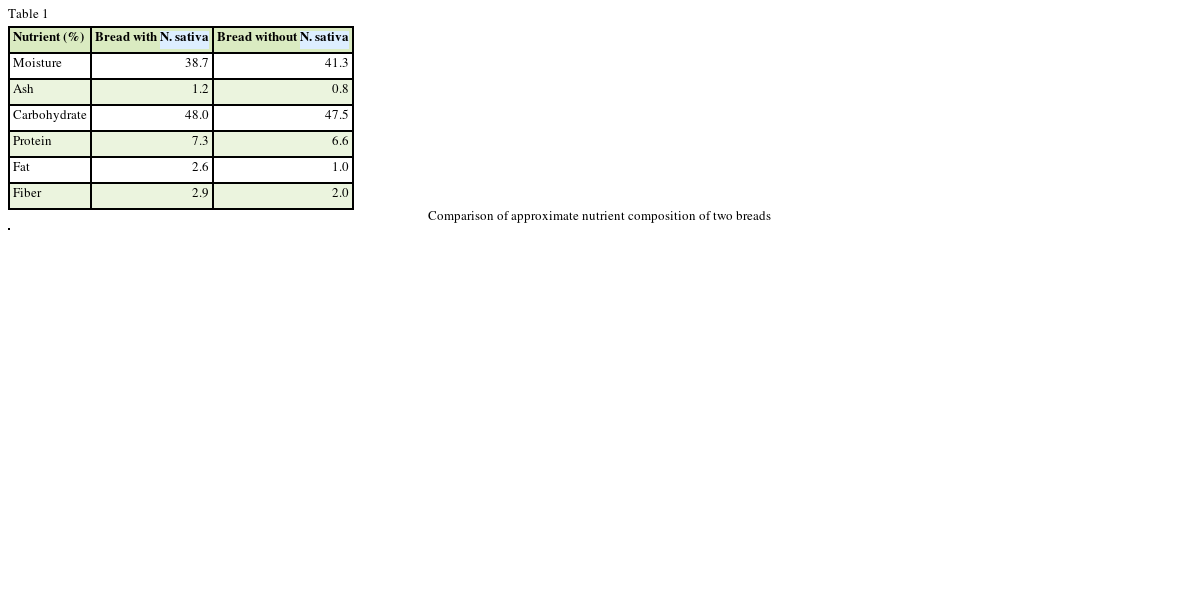 Table 1 Comparison of approximate nutrient composition of two breads