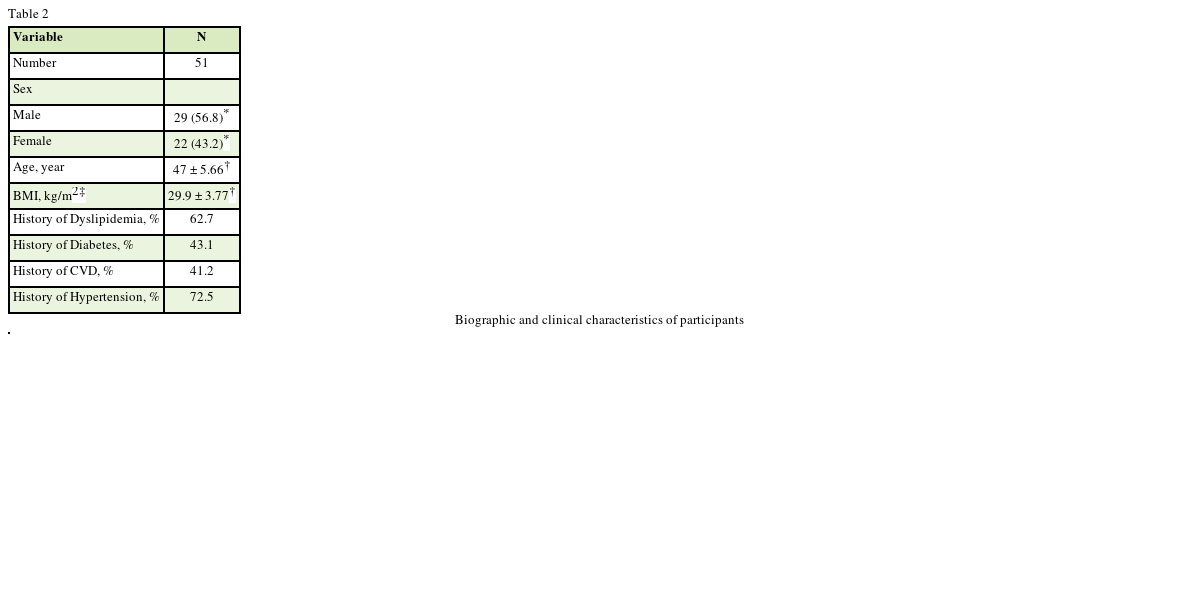 After selection of subjects who had essential parameters to be included in the survey, a total of 54 people with metabolic syndrome entered into the study and was referred to School of Medical Science, Azad University of Chaloos as performing center of the study.