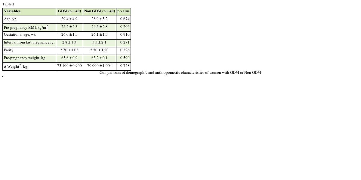 Table 1 Comparisons of demographic and anthropometric characteristics of women with GDM or Non GDM