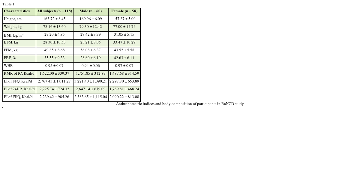 Table 1 Anthropometric indices and body composition of participants in RaNCD study