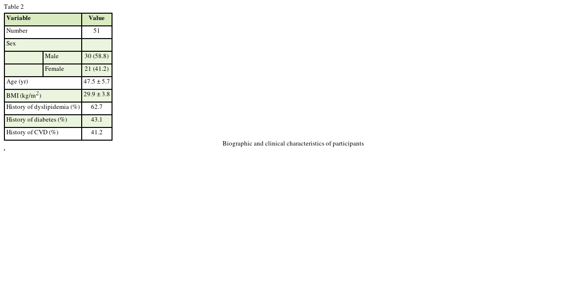 In the beginning, subjects were selected based on inclusion criteria of this study. So, 54 subjects with MetS participated in the study and enrolled to Faculty of Medical Science, Azad University of Chalus. Aims of the survey were informed to all of the patients and consent forms were received from all study participants. Information of subjects such as age, sex, physical activity level, telephone, address, and other characteristics such as the suffering of diseases, use of drug and family medical history were recorded in a questionnaire. For analyzing unusual dietary intake, we evaluated 3 days of dietary food records (a weekend and 2-weekdays) in subjects. Subjects who used herbal therapy or consumed energy less than 1,200 kcal or more than 4,000 kcal, were excluded from the study.