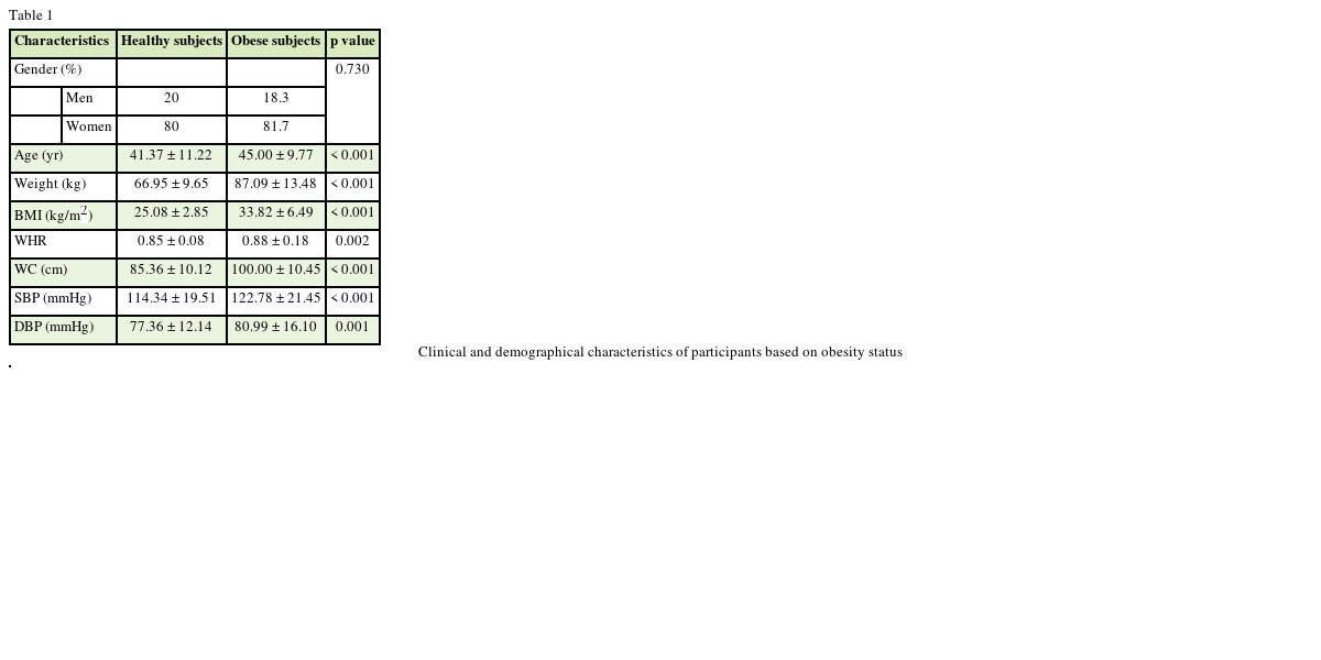 Table 1 Clinical and demographical characteristics of participants based on obesity status