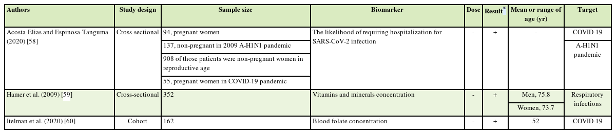 59]. In this study, no publications on the relationship between vitamins and SARS/MERS were found during the study period.