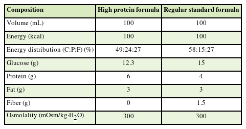 7]. In this case report, we started with trophic feeding at a level of 10 mL (= 10 kcal)/hr following the 2016 SCCM/ASPEN guidelines. Continuous feeding was planned to reduce gastrointestinal side effects. By the 7th day of initiating EN, 75% of the energy requirement was provided through EN, and 90% of requirement was reached by the 8th day.