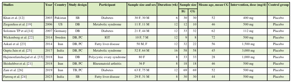 - 26. Zare R, Nadjarzadeh A, Zarshenas MM, Shams M, Heydari M. Efficacy of cinnamon in patients with type II diabetes mellitus: a randomized controlled clinical trial. Clin Nutr 2019;38:549-556.