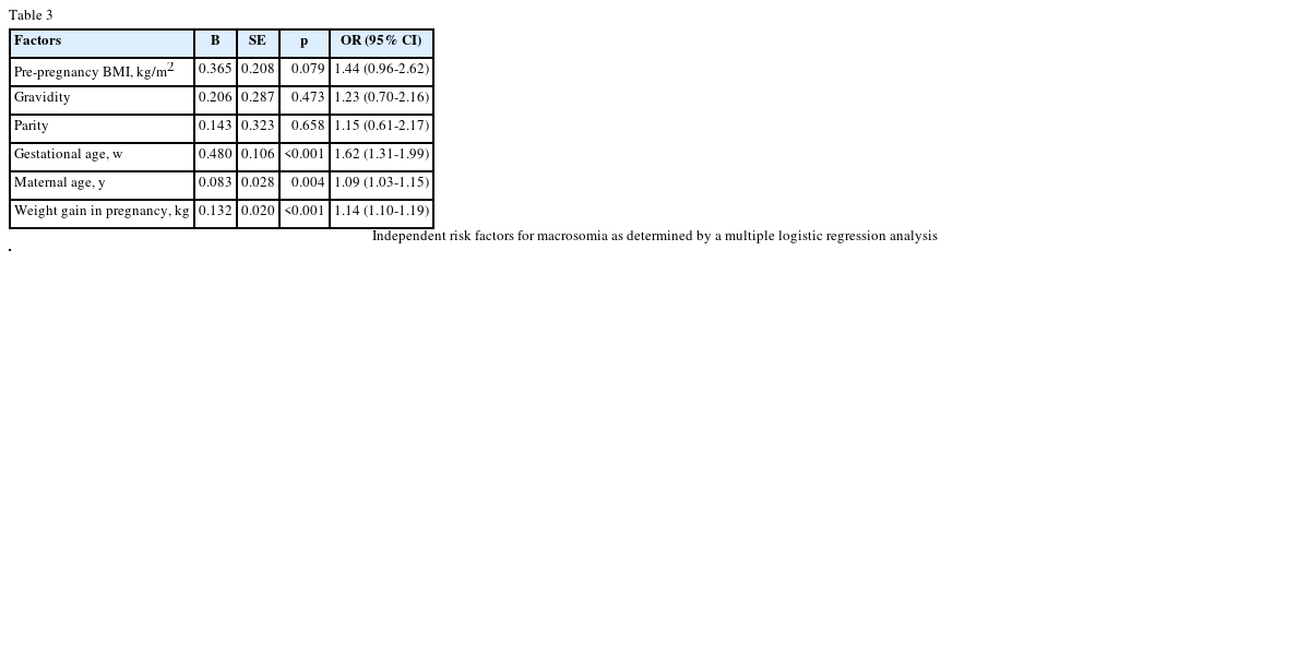 Table 3 Independent risk factors for macrosomia as determined by a multiple logistic regression analysis
