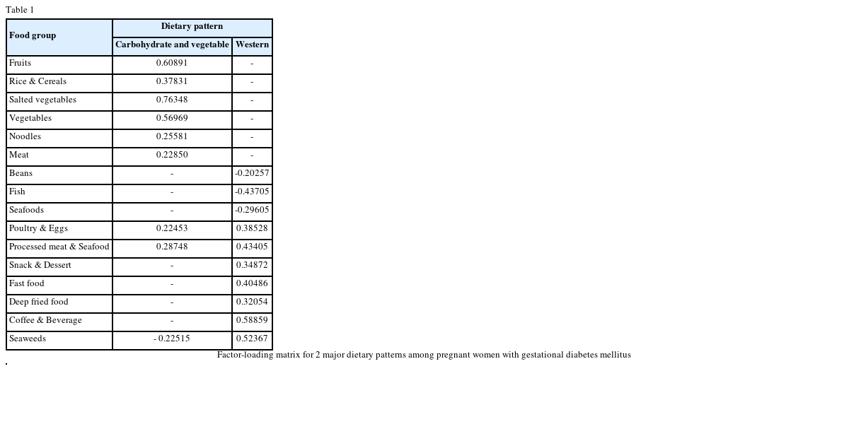 Table 1 Factor-loading matrix for 2 major dietary patterns among pregnant women with gestational diabetes mellitus