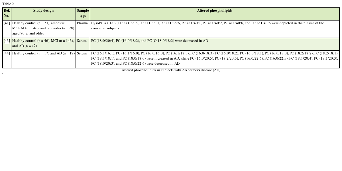 43]. Examples of altered phospholipids in subjects with AD are listed in